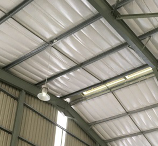 This product is an effective commercial and industrial roofing insulation. A 50 mm thick fiberglass insulation bonded on one side to a reinforced kraft/aluminium foil. Manufactured in 1270 mm wide rolls with a cover width of 1200 mm and in any length from 8 metres up to 25 metres in 100 mm increments.